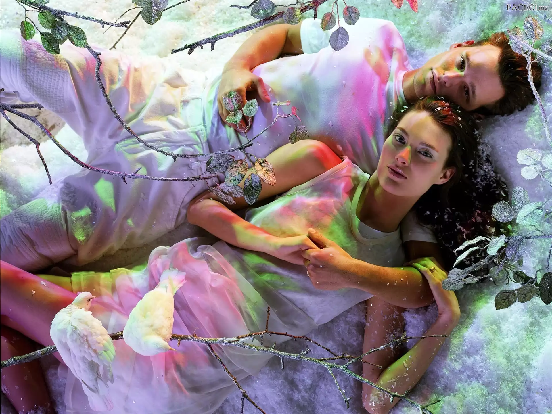 Śniegu, Płatki, Mężczyzna, Kobieta, Ptaki - faceci.biz